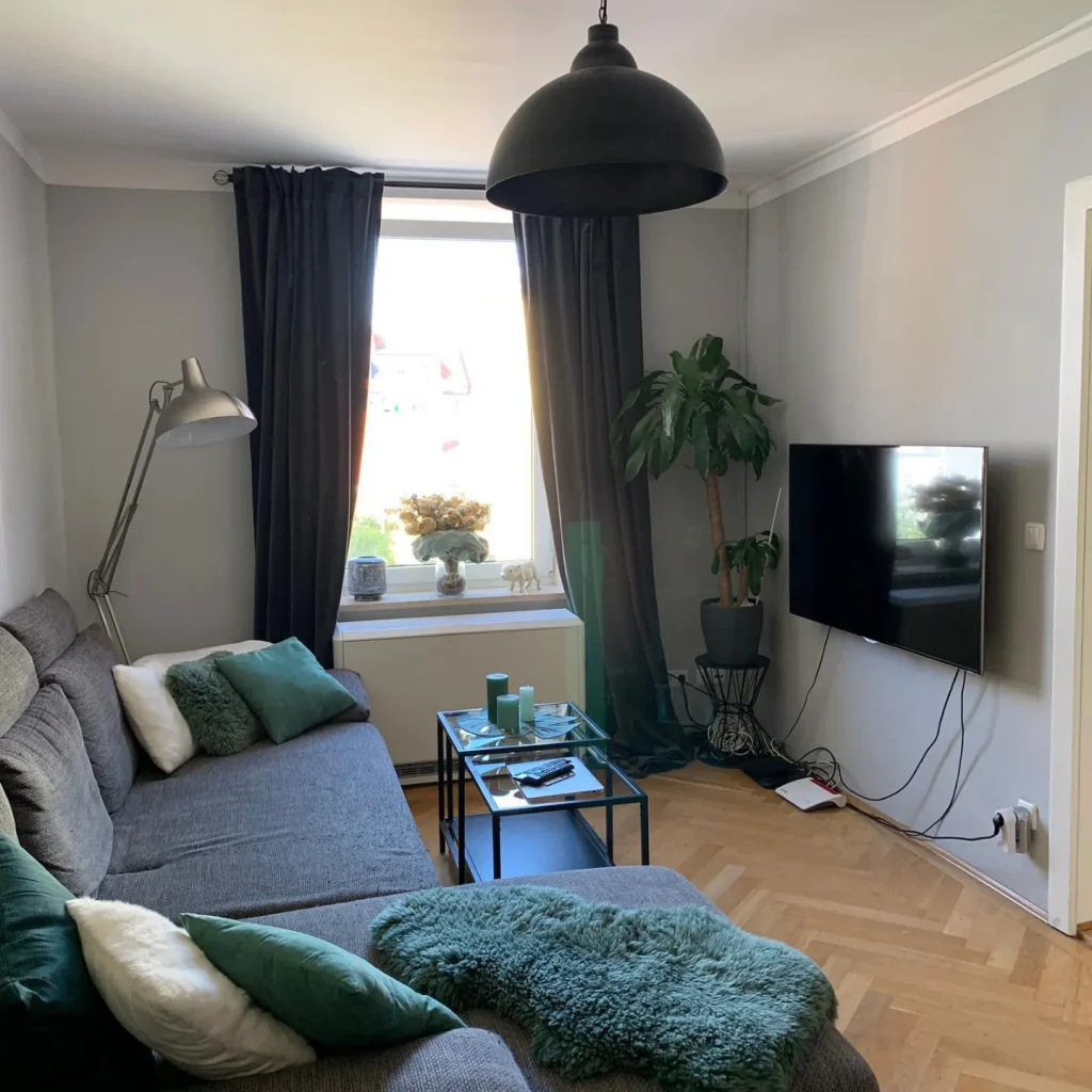 Kad su Denis Pokorny i njegova djevojka uselili u stan u staroj zgradi u Münchenu, stan se grijao termoakumulacijskim pećima. Budući da su uređaji već bili u upotrebi više od deset godina, odlučili su ih postupno zamijeniti s CARBON •ZID/STROP• grijaćim površinama. U kuhinji, spavaćoj sobi i dnevnom boravku, električno grijana staklena vlakna montiraju su na strop kako bi se uštedio prostor.