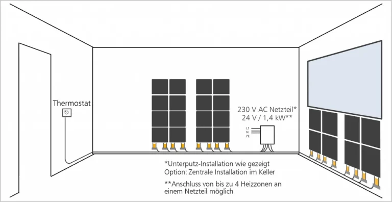 Grijane ploče thermoheld •WAND dolaze u 8 segmenata, svaki s maksimalnom snagom od 300 W i dostižu maksimalnu površinsku temperaturu od 42 °C. Nekoliko thermoheld •WAND ploča već je dovoljno za grijanje većih prostora. Nakon obrade, grijana stropna ili zidna ploča postaje nevidljiva jer se može prekriti komercijalnim bojama. Budući da se sustav može podijeliti u 4 segmenta, čak se mogu i male ili nepravilne površine opremiti modernim grijanjem.